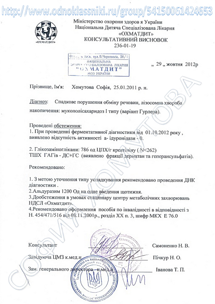 Просьба МОЗ Украины об обеспечении препаратом Альдуразим по гуманитарной помощи