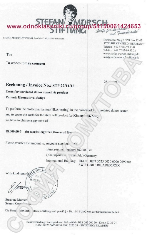 Счет на оплату донора