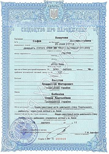 » Свидетельство о рождении